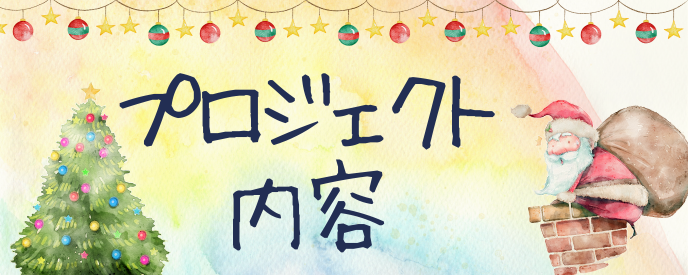 沖縄県のある小児科に入院している子供たちに対してクリスマスのプレゼントを渡します。寄贈する品物は事前に病院に聞きとった”ほしい物リスト”をもとに選定したおもちゃや絵本、DVDなどです。また、NEXTゴールで得た資金は追加の医療機関に対しての寄贈に充てます。