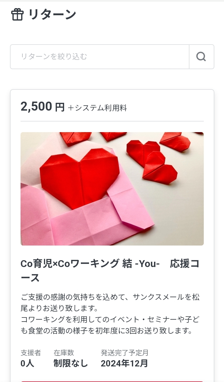 支援額2500円のリターンを追加しました。