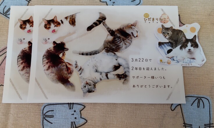 3月22日で「猫交流スペースひだまりねこ」は皆様に支えていただき2年目を迎えました。サポーターの皆様のお力添えで手厚く医療にかけることができますし、猫たちが安心して暮らせています。本当にありがとうございます。またこの2年の間に開催した譲渡会では、ひだまりねこ以外の子たちも、多くの子がトライアルを経て里親様へとつなぐことが出来たことがとてもよかったです。