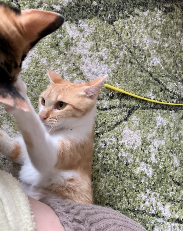 お口のどこに隠していたのか、器用に吐き出していました🐈