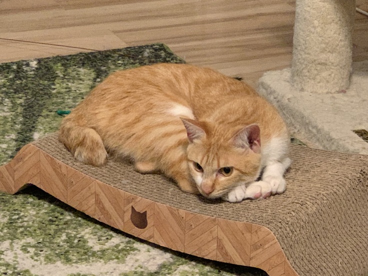 ルルはこの爪研ぎの上を陣地に決定したようです。