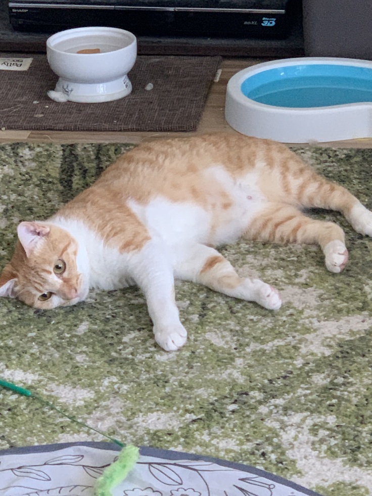 18時半過ぎに空腹原因と思われる、泡のような粘液のようなものを吐いてしまったルル🥲