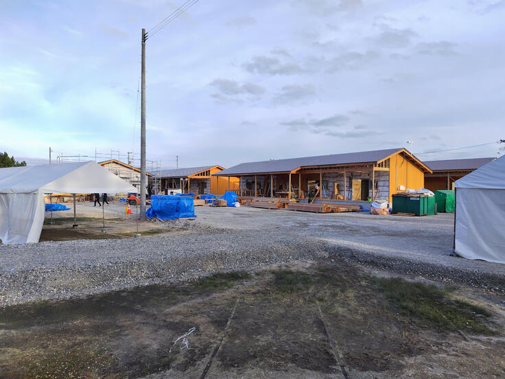 仮設住宅の現場を見てきました。9月末日には、完成予定です。