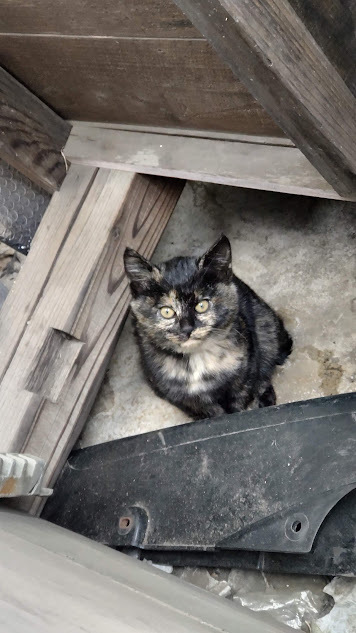 2年前、そのような廃材が雑然と放置された場所に猫たちがいるのに気付き、