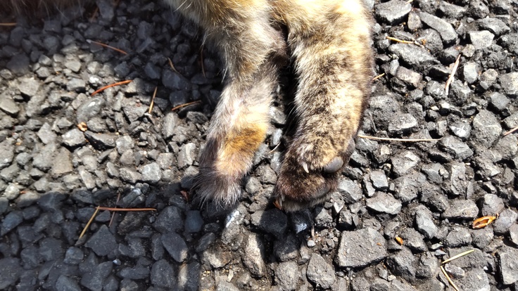 この場所に住んでいるサビ猫さんには、足先がありません。2年前にこの場所を