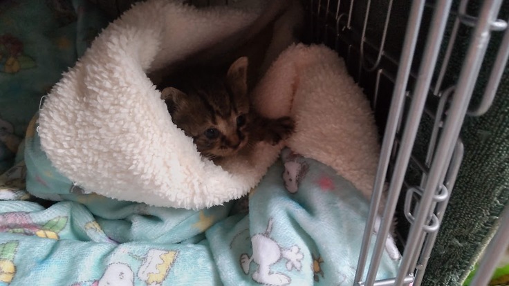 生後2~3週とのこと。ノミがついていたのでノミ取り薬をつけてもらった後、