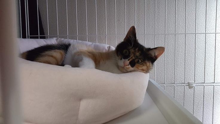 廃材置き場で捕獲したミケの女の子は、不妊手術後、里親さんを探すため