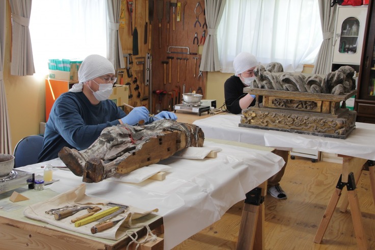 こうした非常に専門性の高い技術を要する事業となるため、今回は東北古典彫刻修復研究所(通称、東古研)に修復作業を依頼することとしました。東古研さんは、山形県上山市に本拠を置く、主に仏像を中心とした彫刻文化財の修復工房です。文化財修復の専門技術や知識、経験をもとに、依頼者と密接な意思疎通を図りながら、東北各地の仏像修復に携われてきた実績を持っています。