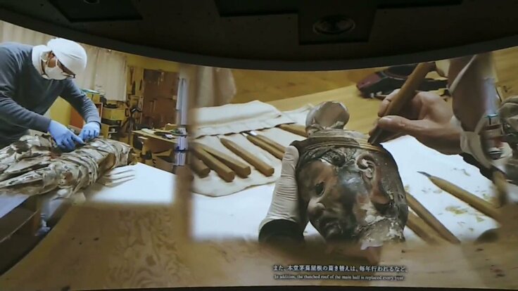 その様子は、史跡慈恩寺旧境内ガイダンス交流拠点施設「慈恩寺テラス」内の240度円形シアタールームで見ることが出来ます。皆さん慈恩寺にご参拝の際は、慈恩寺テラスにも是非お立ち寄りいただき、本映像を最後までご覧ください。