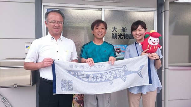 おおふなトン、並びに大船渡つばき娘と一緒に来て下さる観光物産協会の皆様