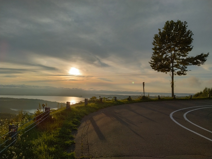 写真は、天都山より、網走湖奥に沈む夕日です。8月28日