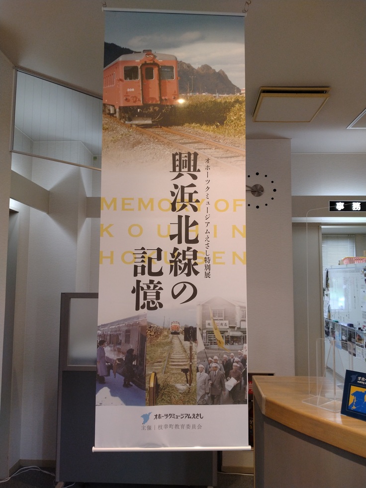 網走への帰り道です。枝幸町のオホーツクミュージアムえさし へ立ち寄りました。ちょうど特別展を開催中で、興浜北線の写真、資料を確認しようと思いました。ベストなタイミングです。