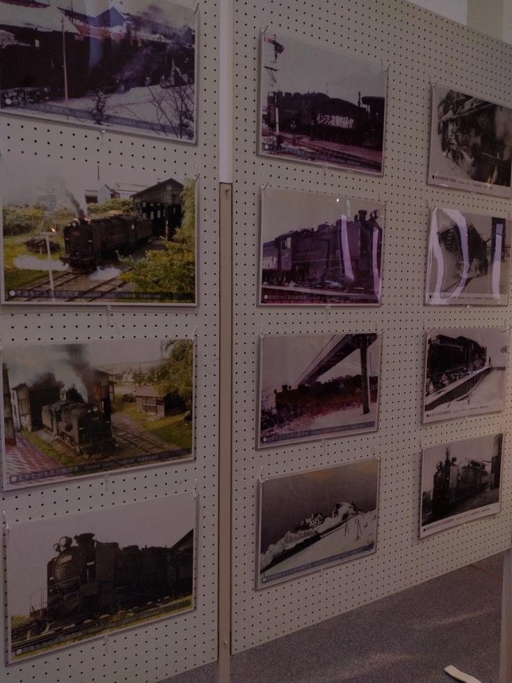中を進むと、パネル展示がありますが、写真の主役にならなくてもチラッと写ってないかと確認しますが、見当たらず。全体的に、蒸気機関車の時代、廃線前の時代が多く、ちょうど、真ん中の昭和54年~昭和59年にいたと思われる時期の写真は少ないです。