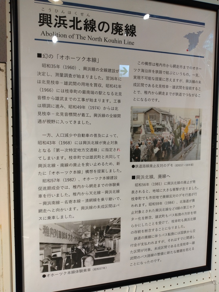 とは言っても、展示内容は興味深く、見入ってしまいました。さようならの横断幕、これは残っていて良かったです。多くの人が見たモノだと思います。2階には常設の展示が枝幸町そして歌登町の郷土資料があります。