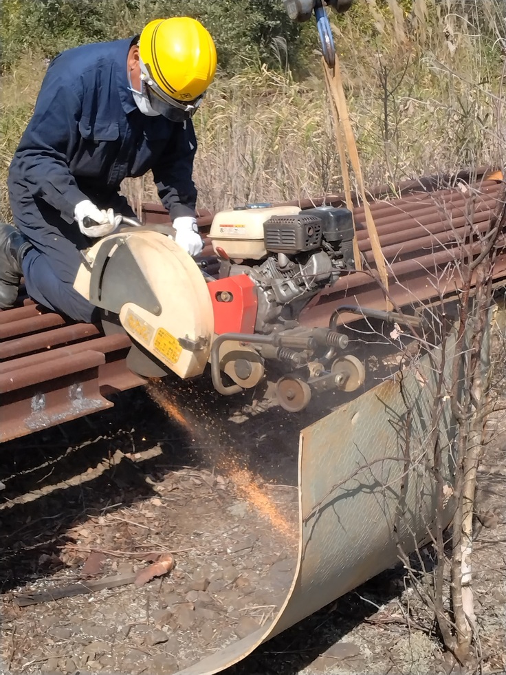 先日、作業の立ち合いに向かいました。専門業者さんに依頼済、打合せ通りの時刻より開始しました。とある場所にあるレール、使われていないので、雑草が生い茂る場所での作業、火の元、足元、重量物のつり上げと、作業に細心の注意を向けながらの作業です。