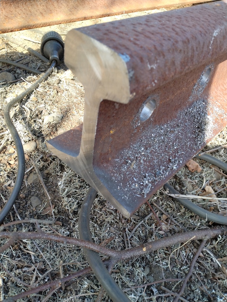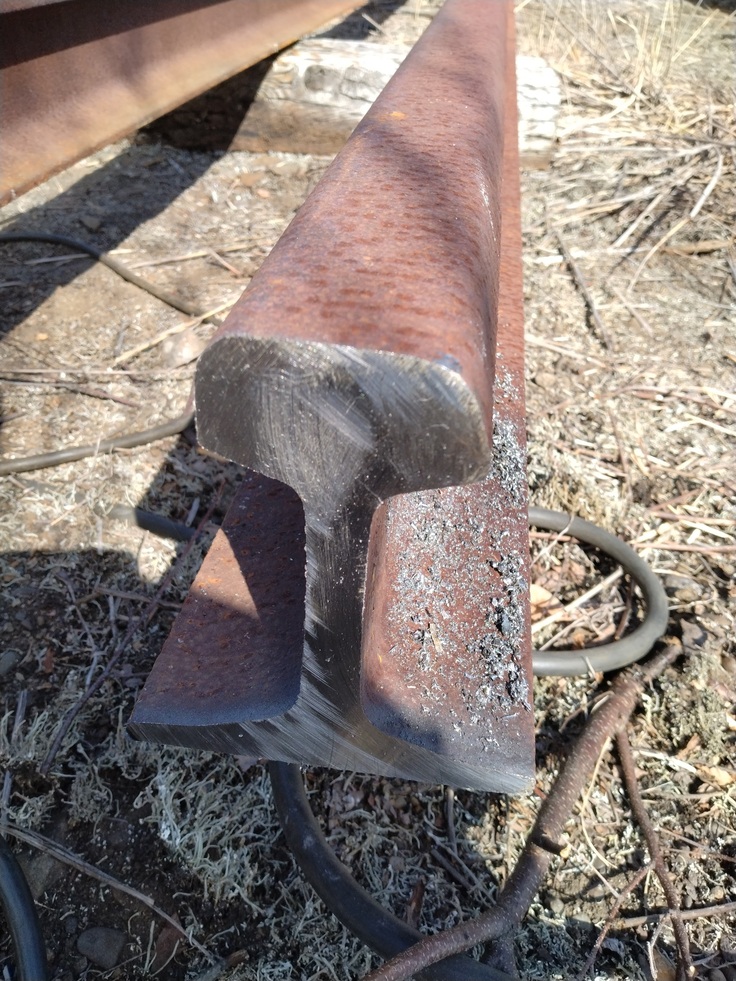 25m定尺レールを半分に。これは、運搬時のトラックの大きさを小さくして、運搬費の低減を図るための作業です。なるべく費用を抑えないと、総事業費が膨らみ続けます。。。