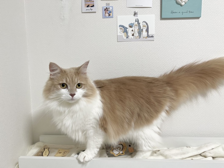 たまにキャットタワーからベットで転がってる私のお腹にダイブする時があるのですが、冗談抜きで死ぬかと思うほどです🥹