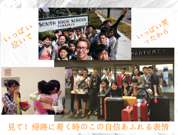 LA滞在中の7日間、その日のアクティビティに合わせた英語のレッスンが毎朝朝食後に用意され、それも大いに役に立ちました。「習っては使う」の毎日です。初日は期待と不安で硬くなっていた笑顔もだんだんと内面から輝く笑顔に変わっていくのに時間はかかりませんでした。そこが子供達の可能性の素晴らしいところです。初日の歓迎BBQパーティから、最終日のさよならパーティまで毎日が感動の連続で、帰りの空港では写真のポーズも旅立ちの時のポーズとは表情が違っています‼️