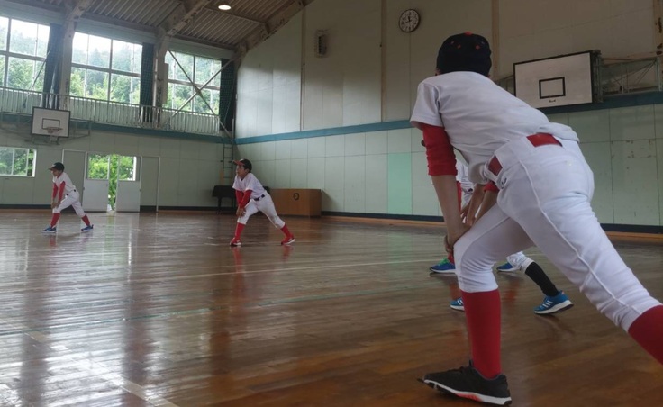 7/15(月)雨のため福池淀江さんとの練習試合が中止になり、体育館練習しました。