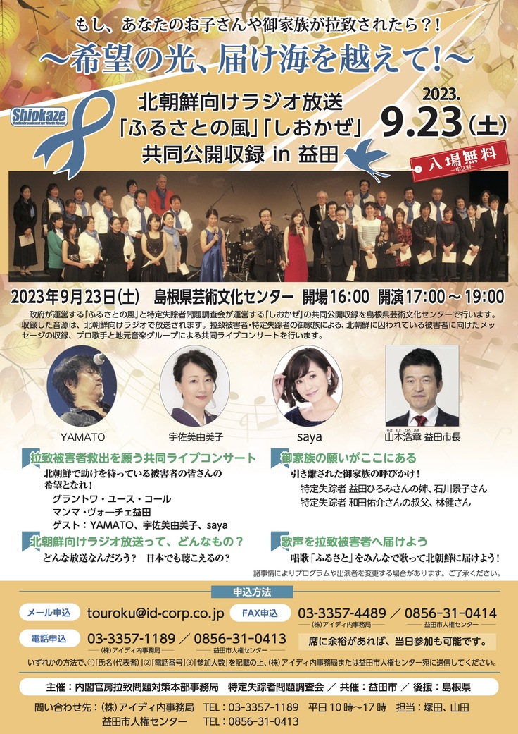 「ふるさとの風・しおかぜ共同公開収録in益田」を9月23日、益田市グラントワにて開催します!