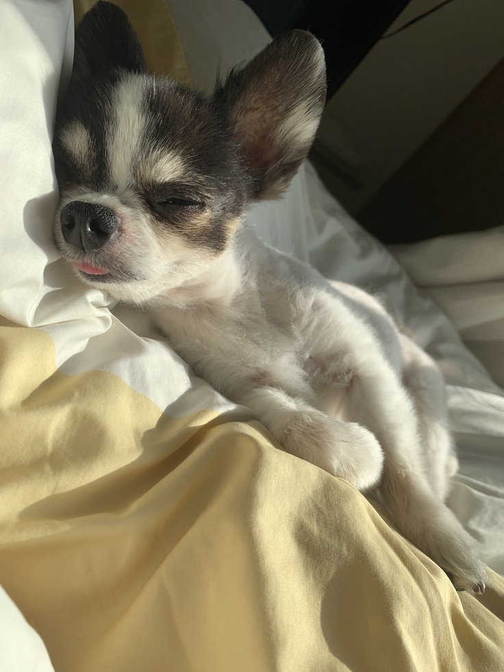 ひなたぼっこが大好きなので、朝はカーテンを全開にしてひなたぼっこスペースを確保してあげると、思惑通りくつろぎだします🐶
