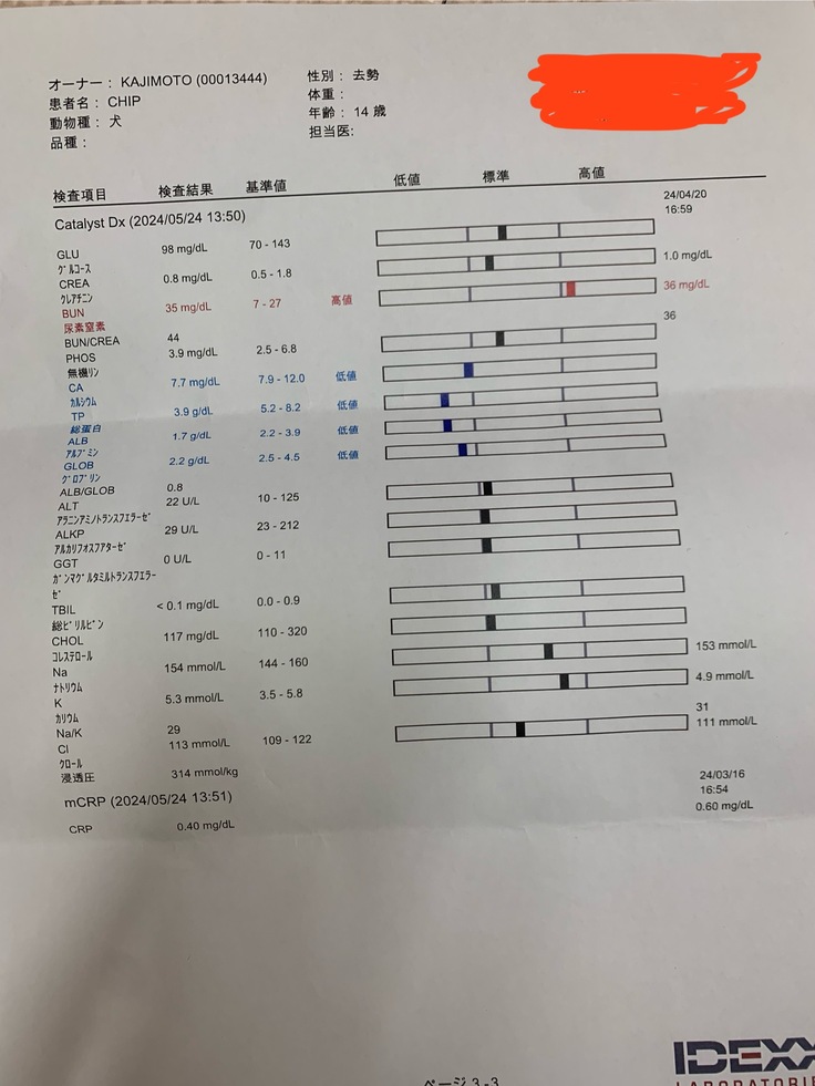 チップは昔から低アルブミン血症といって、アルブミンの数値が低い病気がありました💦