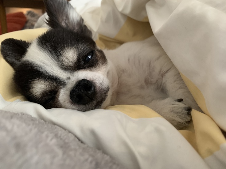 昨日も夜中の咳はだいぶ楽そうなチップ🐶✨