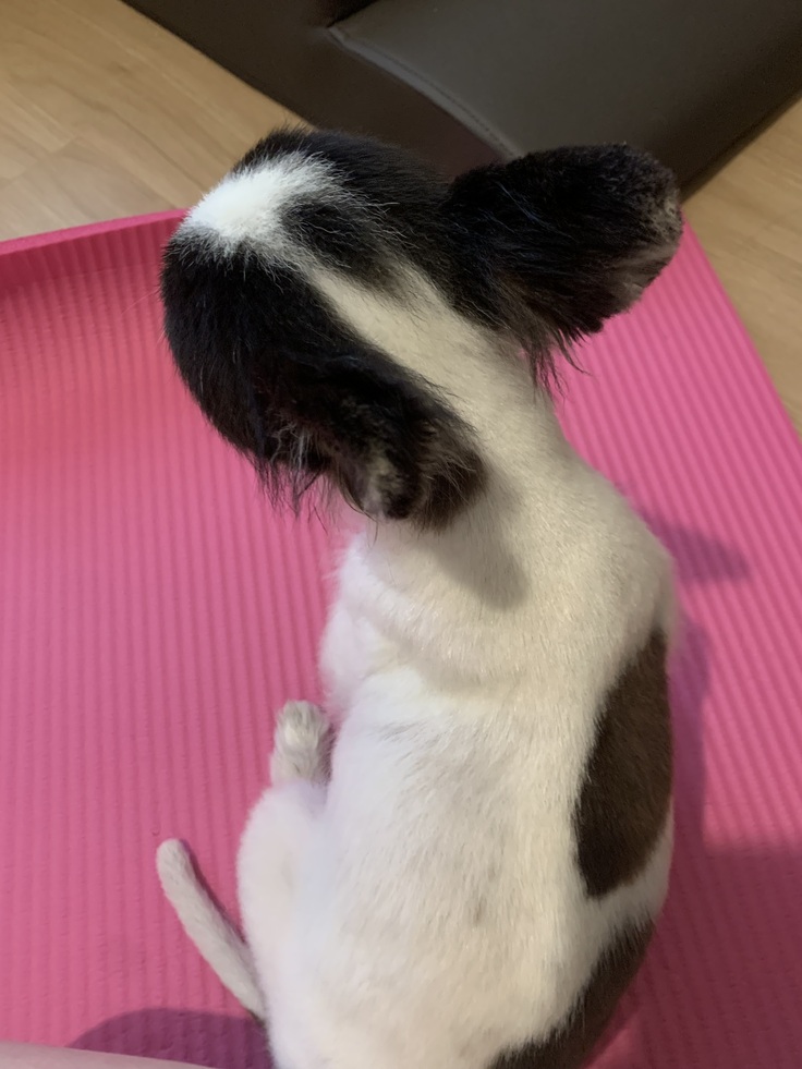 早朝ランニングに行けなかったママのヨガに付き合ってくれるチップです🐶💕