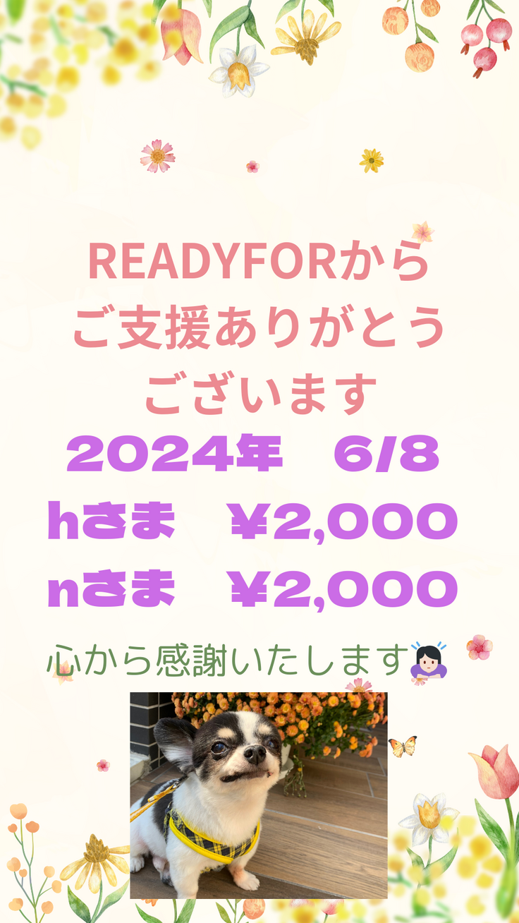 大変心苦しいのですが、日々の治療費など稼ぐことでリターンにかけられる資金がない為、写真付き感謝のメールと活動報告のみでご理解いただけると幸いです。