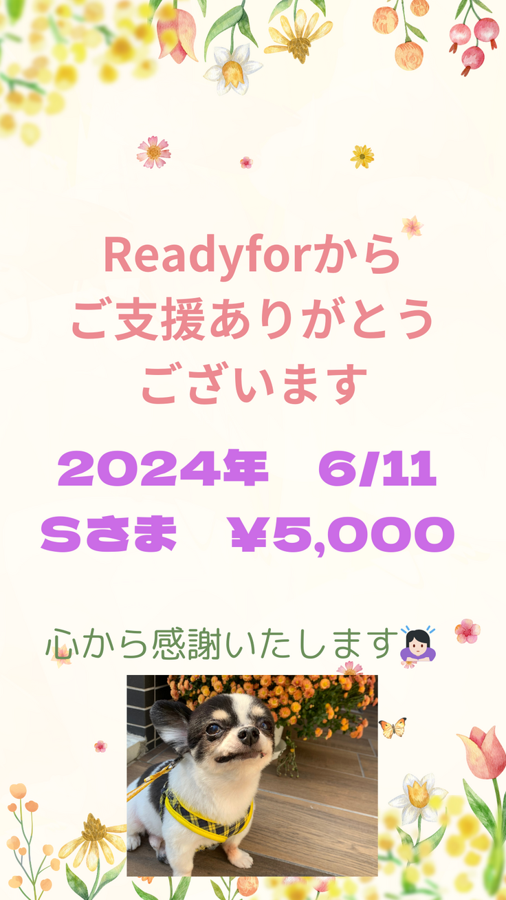 大変心苦しいのですが、日々の治療費など稼ぐことでリターンにかけられる資金がない為、写真付き感謝のメールと活動報告のみでご理解いただけると幸いです。