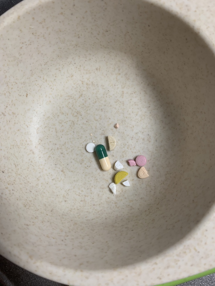 (黄色い薬は苦いみたいで、たまに残していますが)