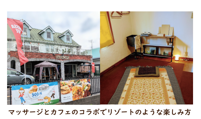 マッサージとカフェのコラボ店はあまりありませんが、カフェのお客様にマッサージのお知らせをすれば、マッサージへの導線になります。