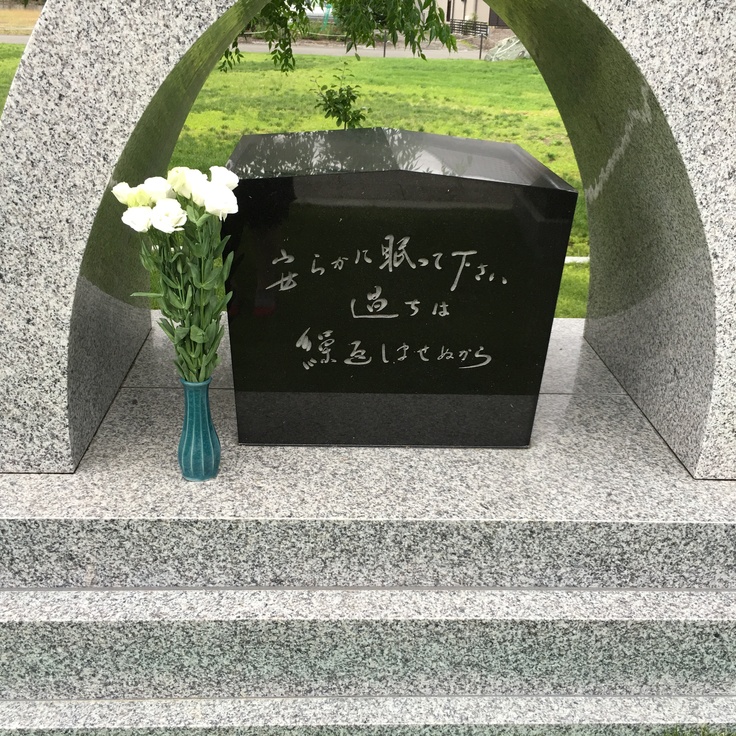 ”わたしたち今いる人類”は事実の一つ一つをしっかりと知ること、そして目を背けないこと、受け止めること、二度と起こさないと一人一人が誓うことが大事、というメッセージをもつ慰霊碑。