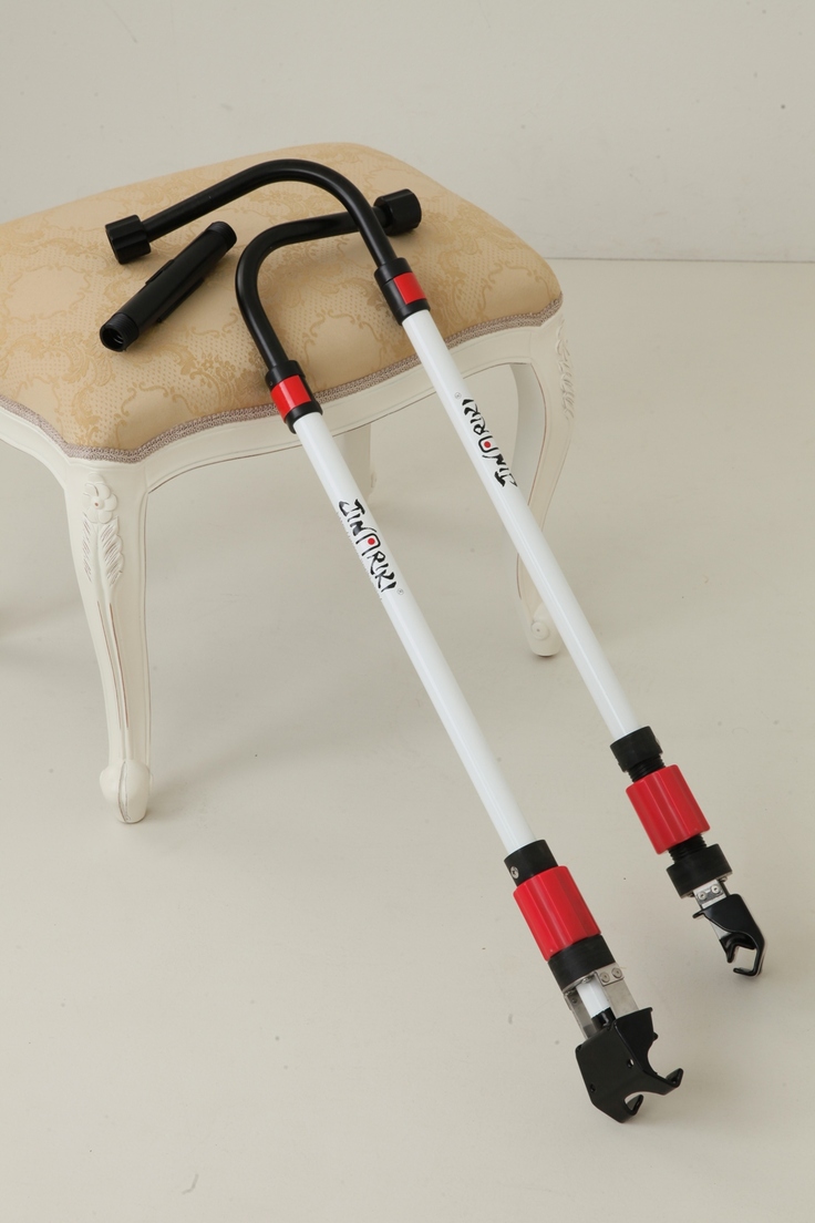 JINRIKI QUICKは既存の車いすにワンタッチで着脱可能な「車いすのけん引装置」です。