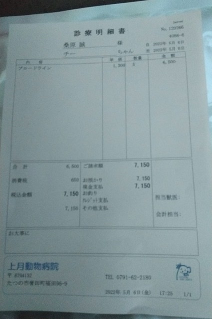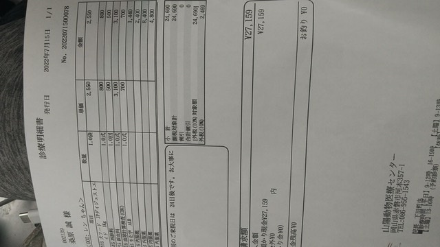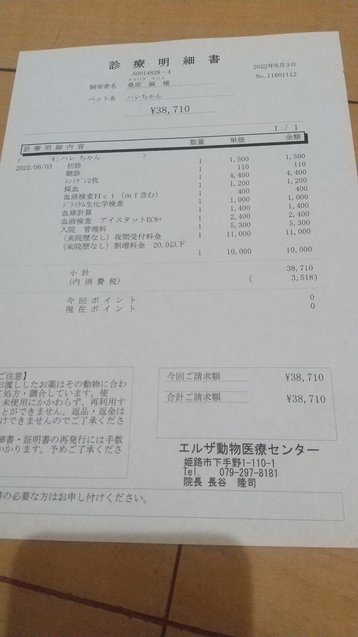 治療費等のレセプト明細はその都度フェイスブック、こちらのメッセージにて発信いたします。