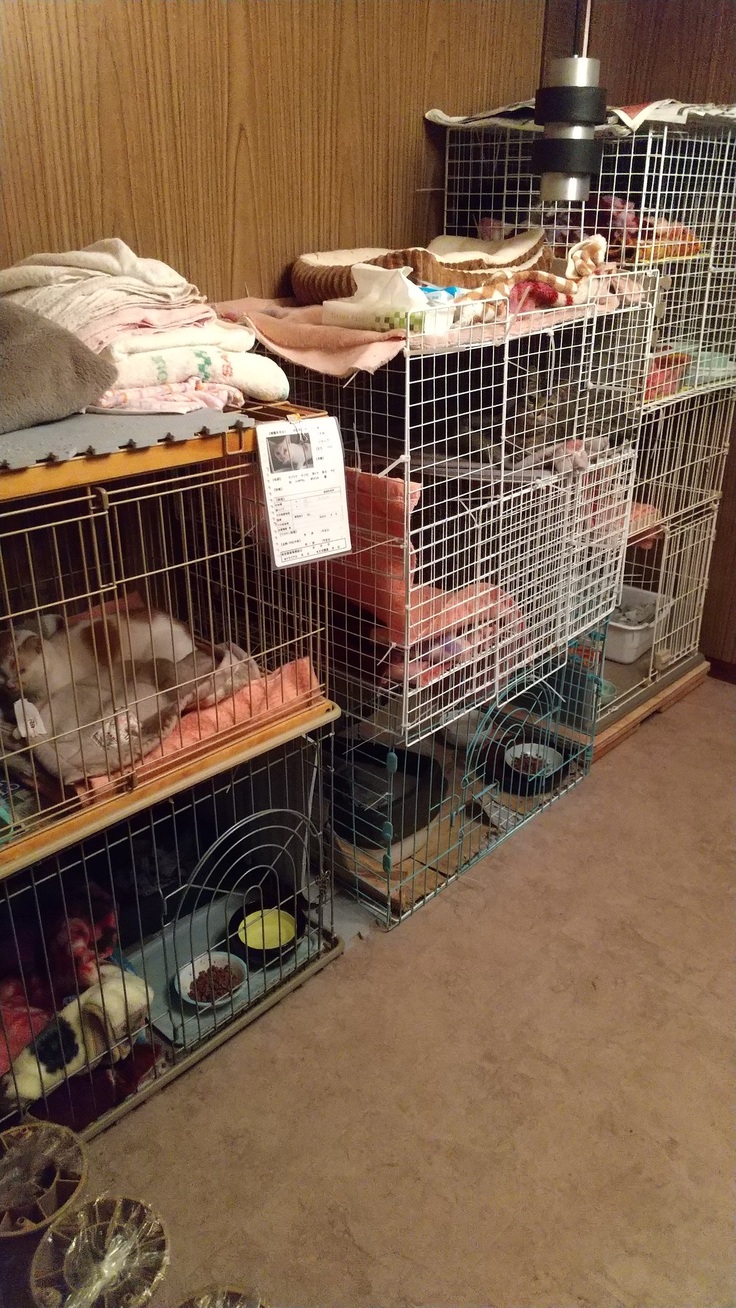 前回に保護した猫達はほとんどの子が里親も見つかり幸せに暮らしていますが老齢、エイズ、白血病の里親をみつかりにくいかと思われる子達が11匹と慢性的な病気を持っている犬2匹の世話をしています。
