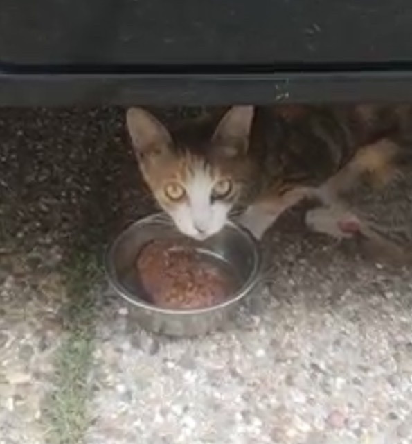 あと、家の近くに朝夕とご飯食べに来ていた尻尾を怪我していた野良猫のミーちゃん捕獲できました。