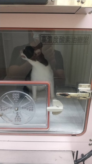 入院当初は口を開けて苦しそうに呼吸していましたが酸素室に入ってからは楽になっています。入院費は1日5000~8000円程、その他治療費がかかってきます。