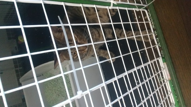 どさくさに紛れて触って撫でるとゴロゴロと喉をならしています。ケージ越しにですが少し前に進みました(*^^*)♪