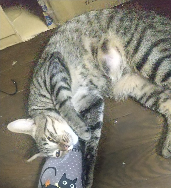 駅前の繁華街で野良猫だった推定2歳のエイズ罹患のマル君。