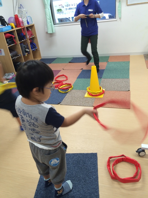 これらの器具は、発達に不安のあるお子さんにとってもとても有効です。個々のボディイメージやボディコントロールをつかむ練習になり、日常生活において、「転びにくくなる」「ぶつかりにくくなる」という効果も現れます。