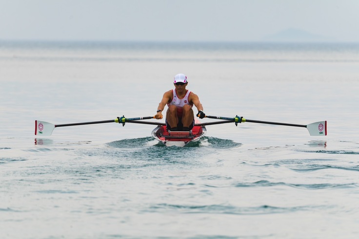 私は昨年2023 World Rowing Beach Sprint Finalsにシニアカテゴリー・男子シングルスカルで出場をさせて頂きました。当初の私は、コースタルの経験の浅い自分でも海特有の荒波の中でのコンディションでならチャンスがあるんじゃないかと思っておりました。自分よりも身長が高く、パワー・体重も秀でた選手達に対抗できるんじゃないかと甘い考えを抱いておりました。
