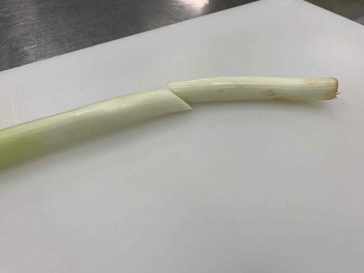 ※一部色が悪く廃棄されるネギ。色が悪い部分を皮一枚剥けば問題なく食べることが出来るのに、細くなってしまうので大きさの規定で使用することが出来ない。