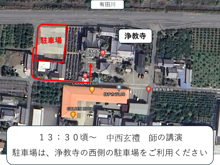 ※車でお越しの方は、浄教寺西側の駐車場をご利用ください。