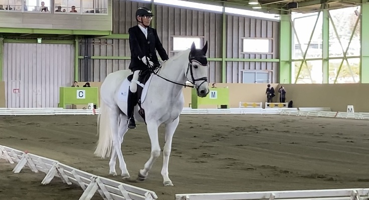 グレードⅠになり初めて出場する3★のカテゴリーの競技でした。パートナーの童夢にとりましては1年ぶりの会場でしたが、終始落ち着き払い3日間を通してしっかりと演技に集中してくれました。わたしは、はじめて3★の競技に出場するということで体が少々硬くなってしまい、このことが童夢の動きにも影響したようで、選手権ではトップの選手に僅差で準優勝という結果となってしまいました。