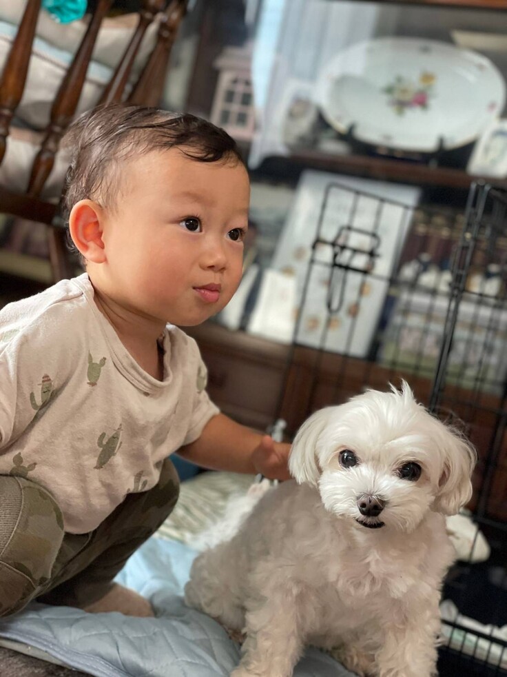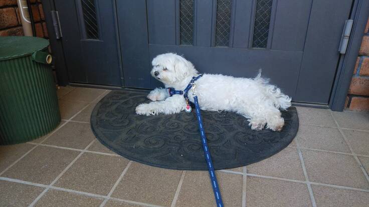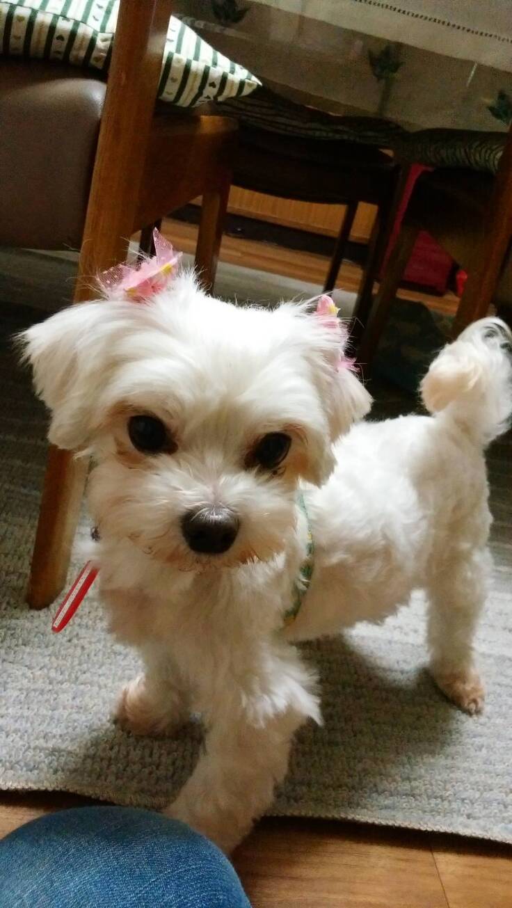 今まで小さいときは猫、12歳からはワイヤヘアードホックステリア(3匹)や元保護犬のマルチーズ等で、現在は元保護犬(繁殖犬)のマルチーズのメイが来て5年、家族の一員となっています。