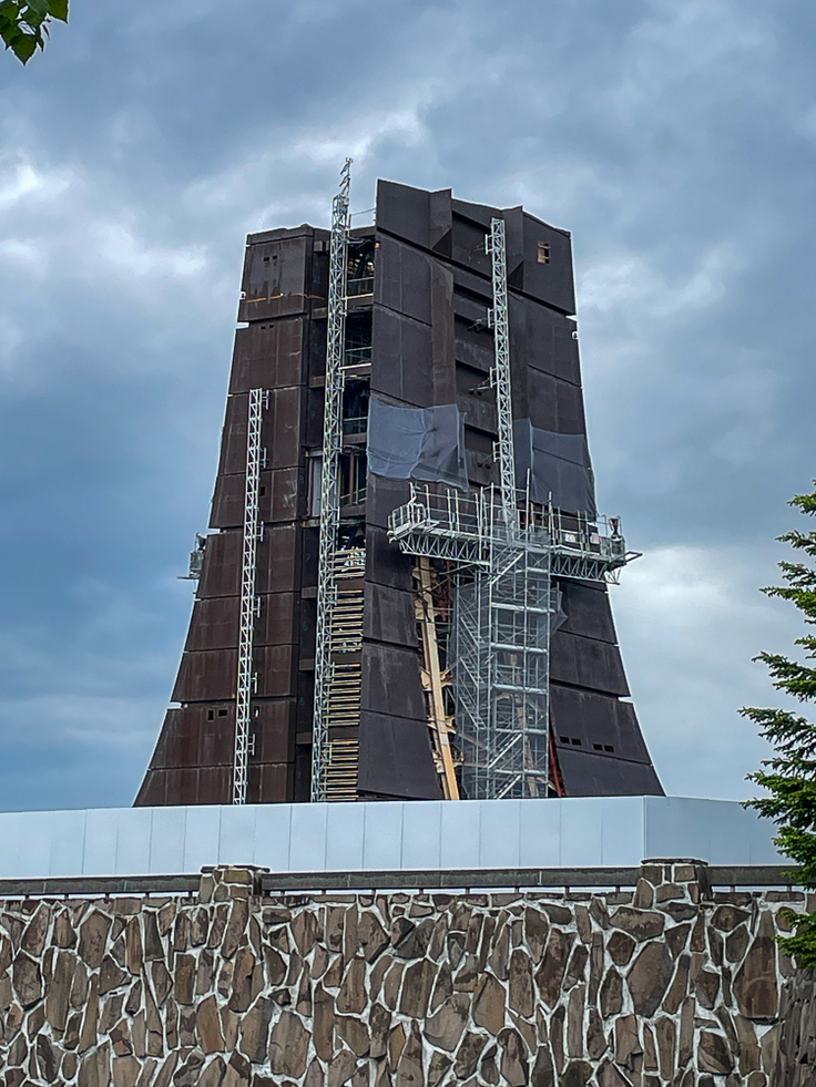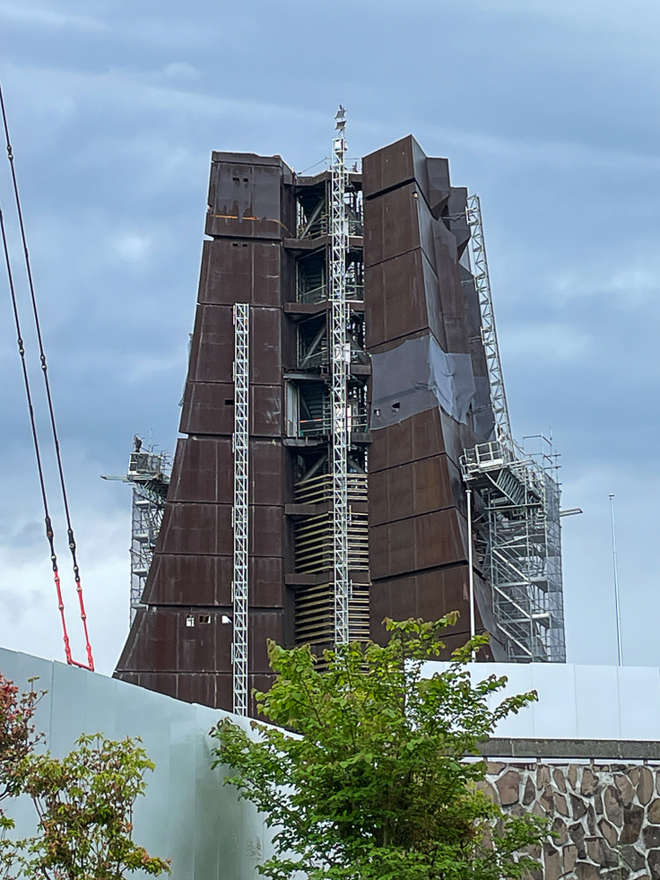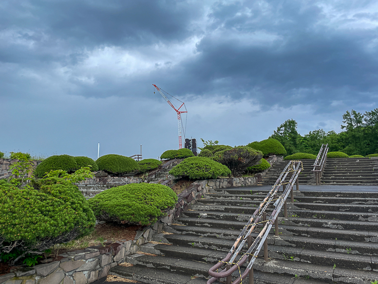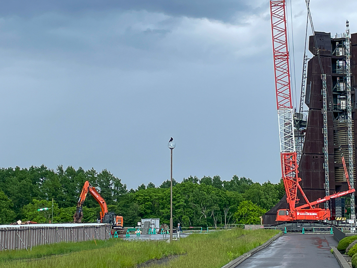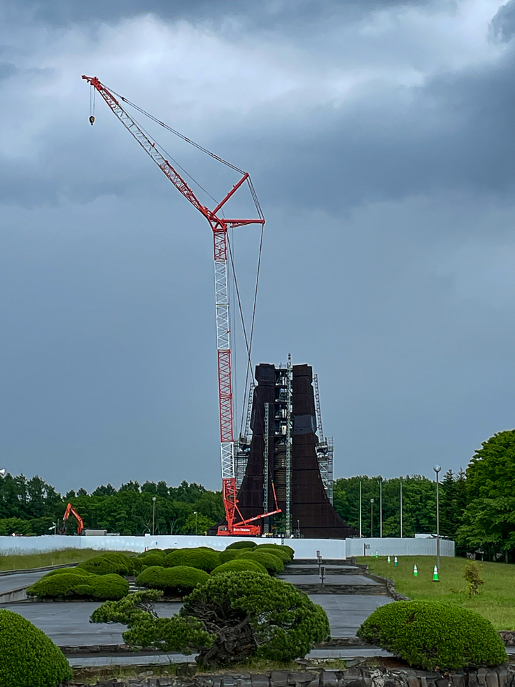 昨日諸事情で撮影できなかったの月曜日の記念塔をお届けします。雨模様の一日でしたが、夕方に上がったので取りに行きました。解体は先週から大きく進みましたが、雨模様のためか私が訪れた時間には作業は行われていませんでした。