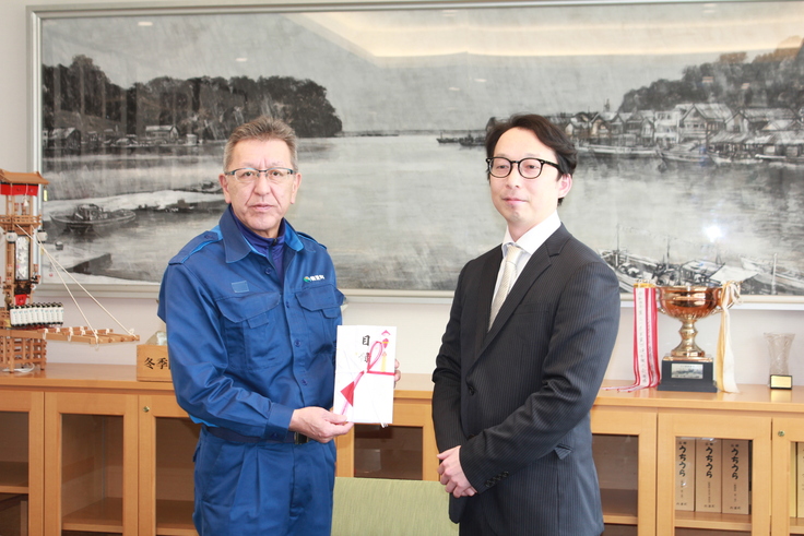 さて、先般3月8日には能登町役場におきまして、町長大森様に義援金をお渡しする機会を頂戴致しました。