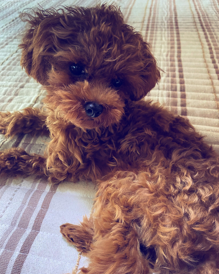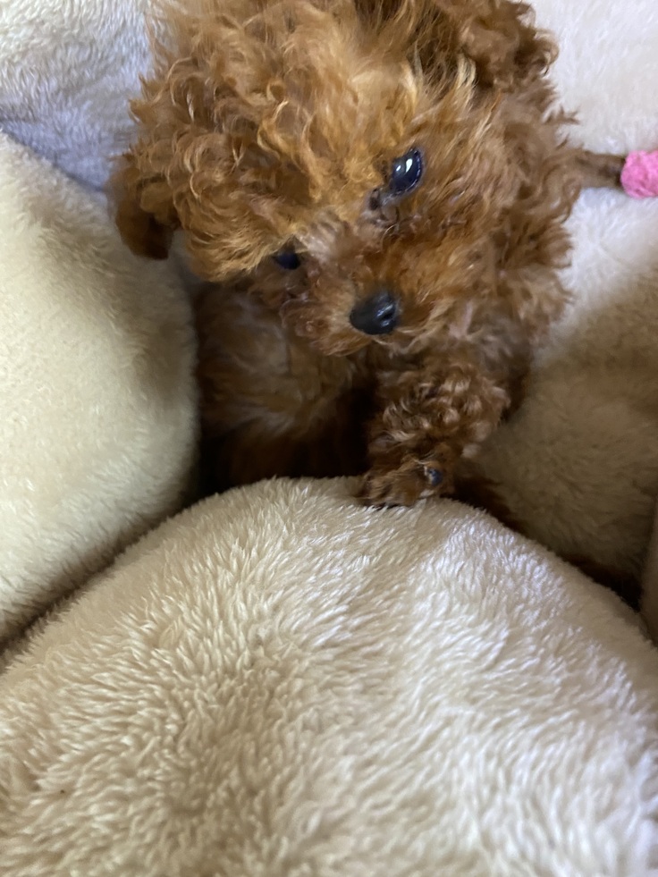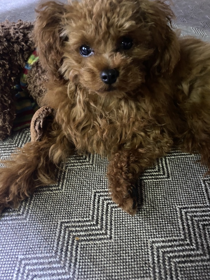 2022年1月4日生まれのティーカッププードルの男の子で、性格は、人懐っこい不自由を感じないくらいの元気な子です。