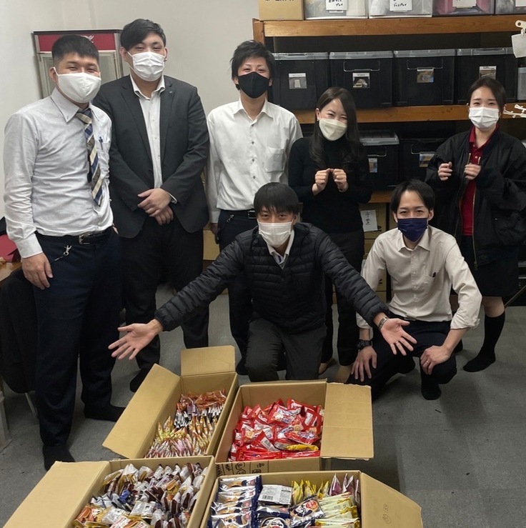 お客様から端玉(余った玉)を交換したお菓子の寄付をいただき、複数の児童養護施設へお届けしています。